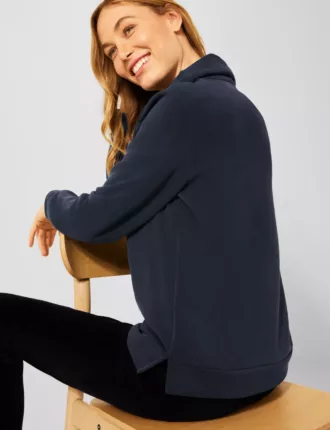Sportos! Alkalmi női kardigán a CECIL-től menő farmer megjelenéssel. A kapucni húzózsinórral és leesett vállú kapucnis stílusban sportos frissítést kap. A teljes cipzáras és praktikus füles zsebek a kardigánt a gardrób kedvenc darabjává teszik.
