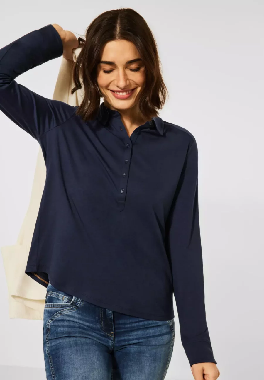Elegáns klasszikus! A CECIL női ingblúza mindig jó választás, ha elegánsnak és mégis kényelmesnek kell lennie. Az inggallérral és egy fél gombbal klasszikus megjelenést kap. Egyszínű színben újra és újra formázható és kombinálható, és nem hiányozhat egyetlen gardróbból sem.