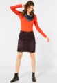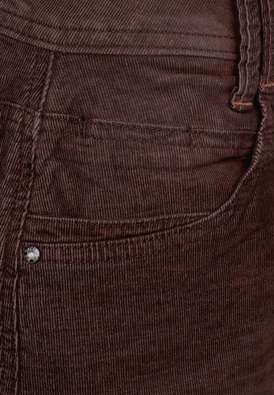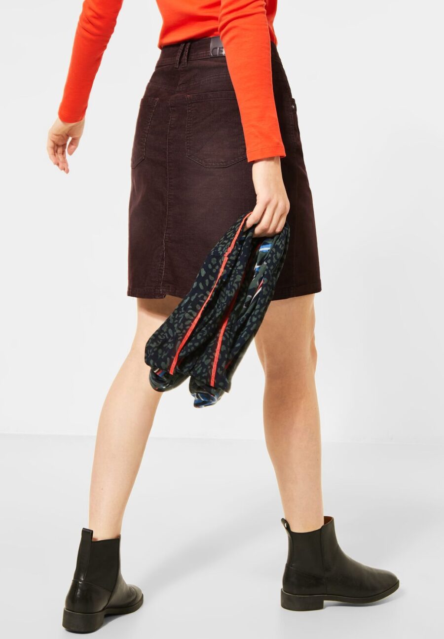 Divatos zsinórral! A CECIL által készített Jenna stílusú rövid szoknya őszi kordbársony megjelenésével és dekoratív gombdobozával inspirál. A felső három gomb kigombolható, a hátul pedig egy rés garantálja a mozgás szabadságát. Az 5 zsebes stílus lekerekíti a megjelenést.